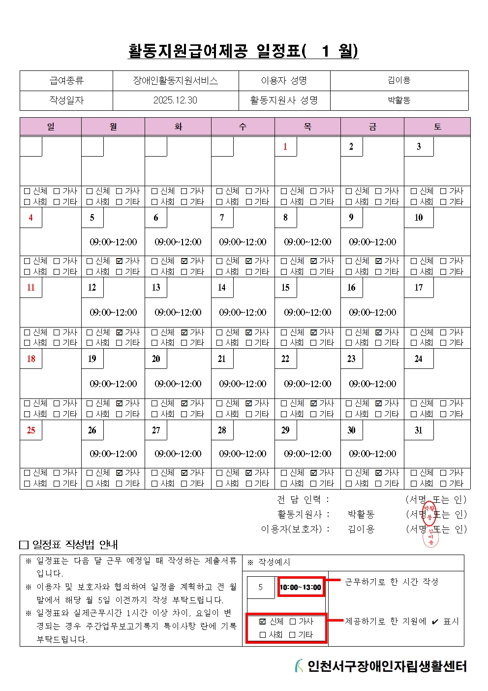 장애인활동지원 이용안내